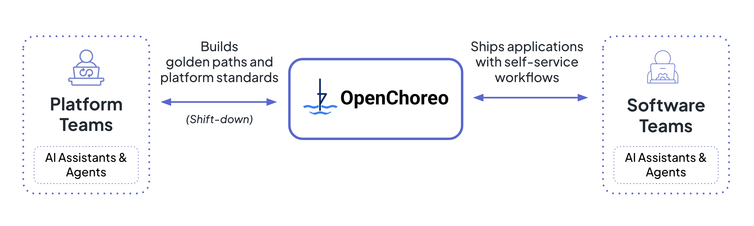 On one hand, OpenChoreo is purpose-built for agent-driven development. OpenChoreo exposes MCP servers and skills that enable your AI agents and copilots to interact with the platform as first-class participants, allowing them to create and deploy components, manage platform configurations, and reason about the platform's state.